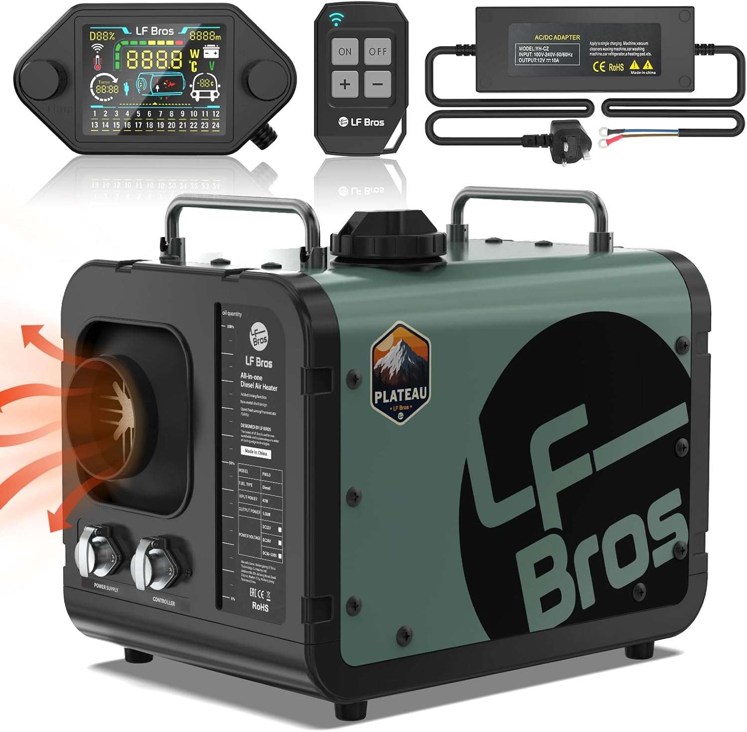 - Best Multi-Power Heater: LF Bros 110V/12/24V 5KW Diesel Heater